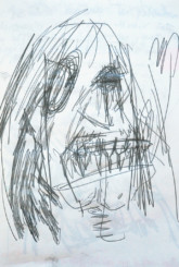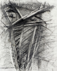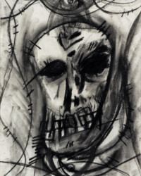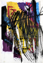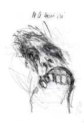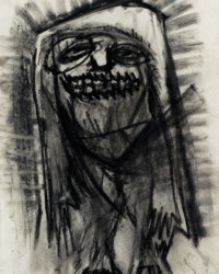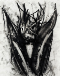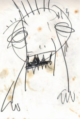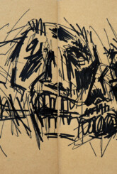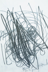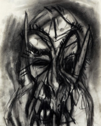 Supportant difficilement la contrariété le poussant généralement au contrôle, son caractère irritable l’incline à faire preuve de manifestations excessives, observables au travers de ses créations. S’illustrant uniquement en noir et blanc, il griffonne violemment, au moyen de tracés incisifs, francs et percutants, donnés par à-coups répétés et saccadés – une gestuelle représentative de son état de tension (nervosité chronique) et de stress sciemment provoqué.